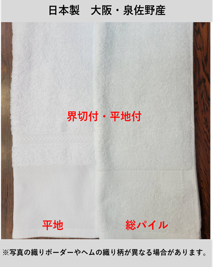 タオルの両サイドにパイルのない平地の部分があります。(写真左側)